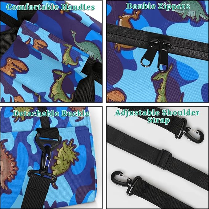 Personalized Duffel Bag for Kids Girls Boys, Cartoon Dinosaurs Custom Name Gym Bag Overnight with Padded Handles Carry On Weekend Sports Travel Bag for School Practice Gymnastics Ballet