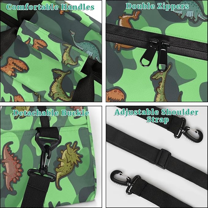 Personalized Duffel Bag for Kids Girls Boys, Cartoon Dinosaurs Custom Name Gym Bag Overnight with Padded Handles Carry On Weekend Sports Travel Bag for School Practice Gymnastics Ballet