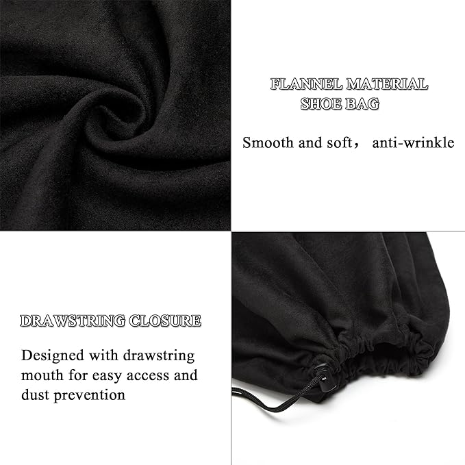 - Breathable Material : shoe bags made of quality flannelette material, our shoe dust bags are washable, foldable and firm, with comfortable touch, not easy to break, wear or fade, can be kept and applied for a long time.