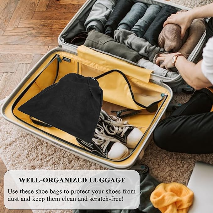 - Secure Drawstring Closure : these shoe covers for travel have convenient drawstrings, which can avoid your items from dust; They can be applied to hold various small items, like shoes, cosmetics, towels and more.