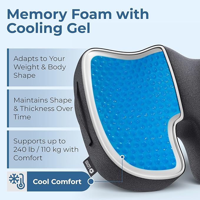 5 STARS UNITED Seat Cushion for Tailbone Pain Relief – Memory Foam Cushion for Coccyx, Hemorrhoid, Sciatica & Post-Surgery Recovery – Wheelchair, Car, Desk, Gaming & Office Chairs, Arctic Black
