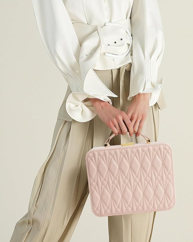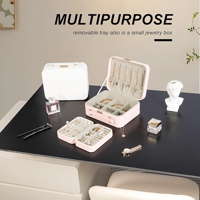 - Jewelry box with handle design is different from ordinary jewelry boxes. Easy to carry them to occasions such as travel or performances. The removable tray is also a travel jewelry box, which is functional and compact enough to carry in a bag or luggage.