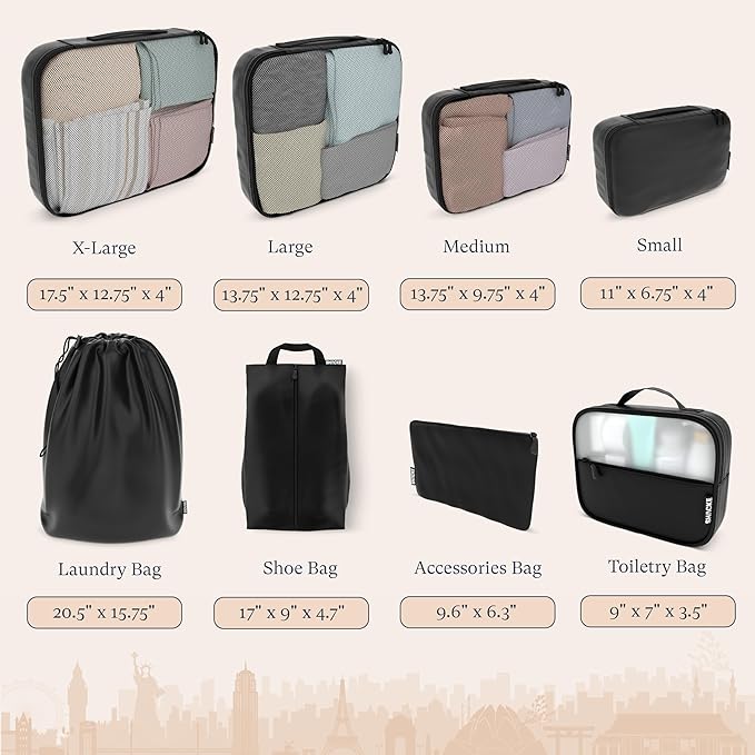 - Easy Clean Material – Watch liquids glide smoothly off your packing cubes making it easy for cleaning. Accompanied by smooth snag free ergonomic zipper pulls, pack your way through any travel adventures while resting assure your packing cubes are made from the best material.