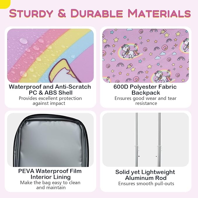 - [ Bonus Accessories ]: Comes with thoughtful extras, the luggage set does a great help to enhance your journey. The cozy neck pillow ensures your child to rest comfortably while on the go and a luggage tag for quick identification in busy terminals or schools. Plus, an insulated lunch bag is useful to keep food fresh and easily accessible.