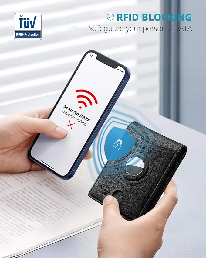 - Rfid Blocking Wallet- This wallet for AirTag boasts RFID blocking shield technology, safeguarding your personal and financial data against unauthorized scanning and identity theft. Enjoy peace of mind knowing that your information is safe and secure