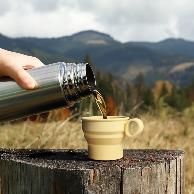 - The Silicone Collapsible cup is made of made of premium Korean silicone, food grade, and BPA Free, so there is no risk of it breaking or scratching. The Travel Cup has strong heat resistance and excellent elasticity and durability, so it can be used for a long time without deforming even when frequently twisted, folded, or pulled.The Camping Cup can be easily folded and unfolded, making it suitable for portable use such as camping, hiking, and picnics.