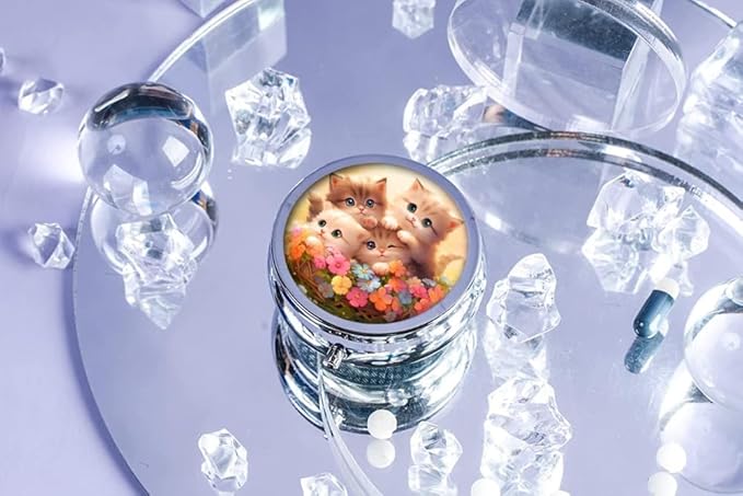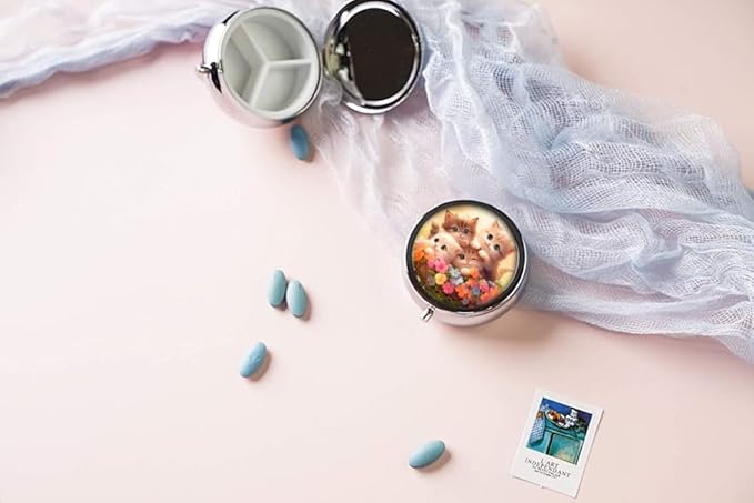 Pill Box,Cats Cat Round Pill Box 3 Compartment Decorative Pocket Purse Portable Mini Travel Medicine Tablet Vitamin Holder Organizer Pill Case