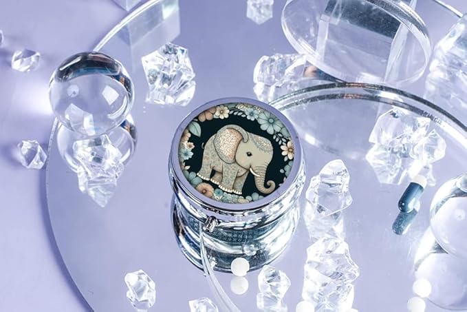 Pill Box,Floral Elephant Round Pill Box 3 Compartment Decorative Pocket Purse Portable Mini Travel Medicine Tablet Vitamin Holder Organizer Pill Case