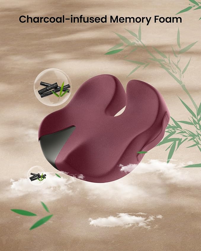 ProtoArc Seat Cushion, Office Chair Cushion for Sciatica, Coccyx Cushion, Ergonomic Memory Foam Seat Cushion for Car, Home, Pressure Relief Pad for Hip, Tailbone, All Day Comfort - Wine Red