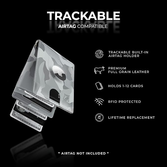 - Wallet Airtag Holder: Features a dedicated slot or pocket specifically designed to securely hold an Apple AirTag, allowing you to easily track your Kings Loot wallet using your iPhone. AirTag Not Included.