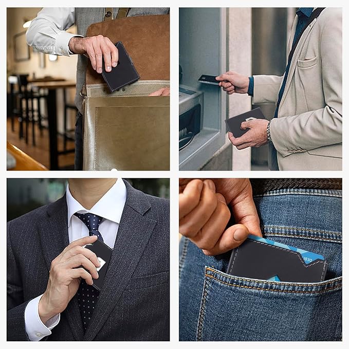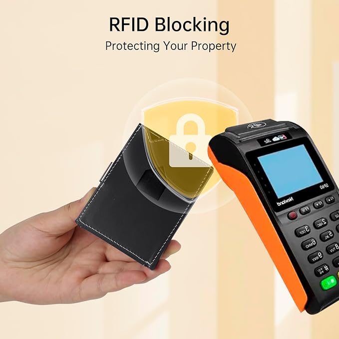 - 【RFID Safeguard】Advanced RFID blocking technology. Wallet embedded can block and interfere with commonly used 13.56mhz or higher shielded cards, which can prevent credit/debit/transportation cards etc. from being scanned by unknown devices, providing security for your belongings and data. Suitable for daily use in your pocket or bag, can be used to store ID card, work permit, transportation card, etc.