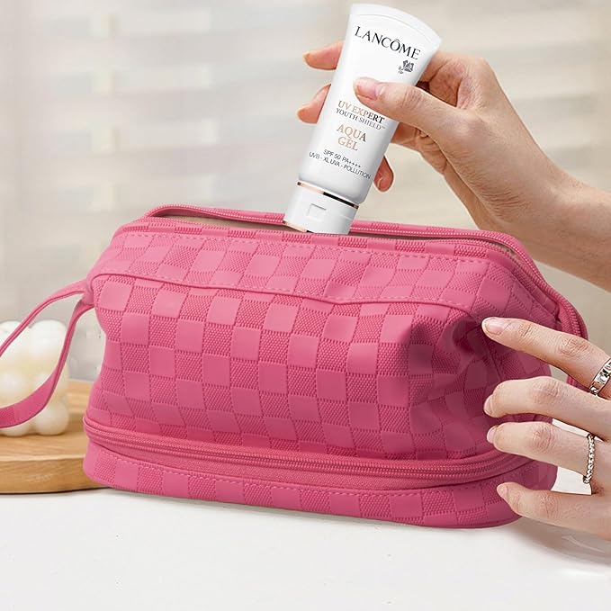 • Smart Multi Functional Design:Functions as both a cosmetic organizer and toiletry bag. Ideal for daily use, vacations, or business trips - keeps makeup, brushes, and skincare products neatly separated