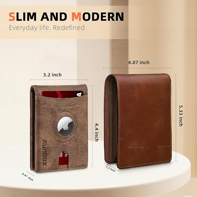 RUNBOX AirTag-Wallet-Mens-Slim-RFID Blocking Wallets Leather with Bill Compartment Air Tag Bifold Card Holder Wallet Gifts for Men Dad