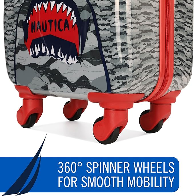 Nautica Kids Luggage - 18" Airline Approved Rolling Hardside Upright Carry-on Suitcase with Wheels (Shark Attack)
