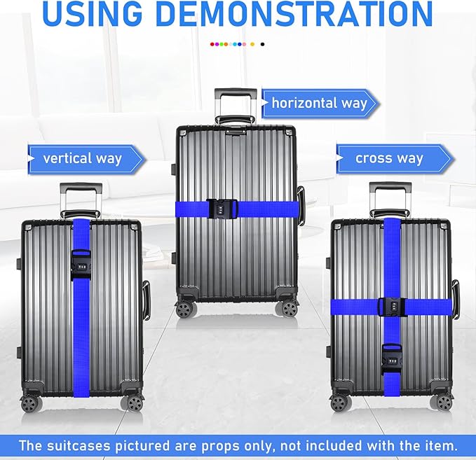 - 【Safe and Convenient】 Lockable luggage straps are made of high-end polypropylene and feature a resilient lock buckle. Set 3 numbers as your personal password that can open your lock without any key, keeps your luggage much safer.Protects luggage from accidental opening while traveling, even with rough handling.