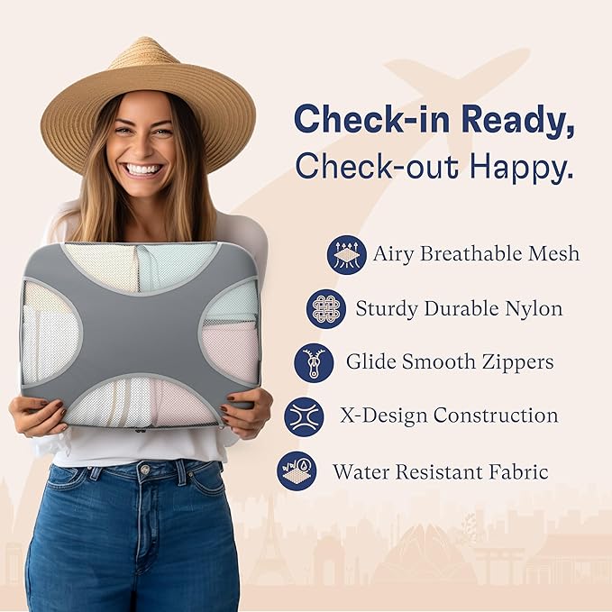 - Easy Clean Material – Watch liquids glide smoothly off your packing cubes making it easy for cleaning. Accompanied by smooth snag free ergonomic zipper pulls, pack your way through any travel adventures while resting assure your packing cubes are made from the best material.