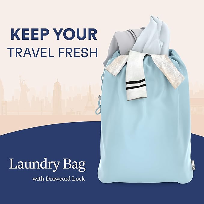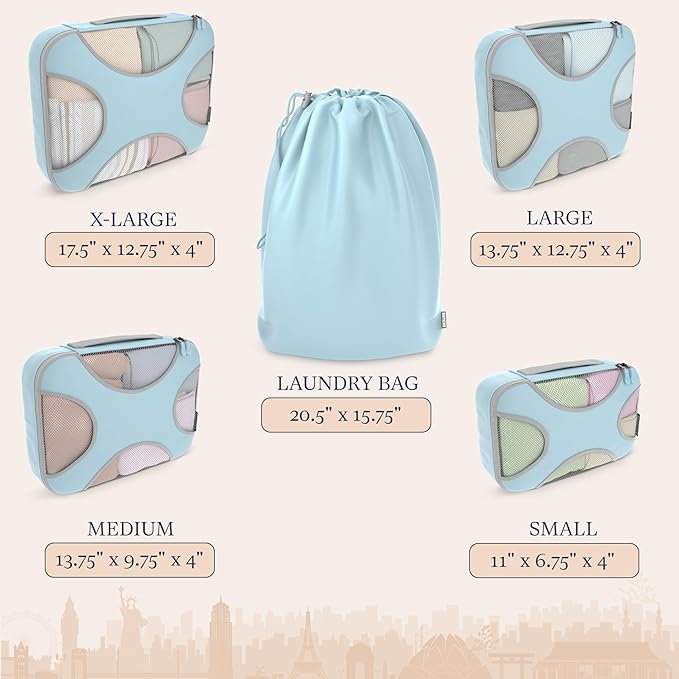 Shacke Premium 5 Packing Cubes Set - Lightweight Mesh Travel Luggage Organizers with Laundry Bag, 5-Piece Suitcase Storage System (Sky Blue)