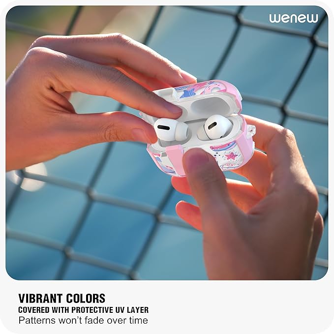 WENEW Case for AirPods Pro & Pro 2 Case Cover Secure Lock Snap Switch Clip Cleaner Kit Lanyard Women Stylish Universe Moon Full Body Hard Shell Front LED Visible (Pink Universe, AirPods Pro & Pro 2)