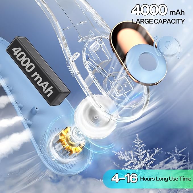 - ❥【UPGRADE AIR VOLUME - INCREASE 70%】 Upgrade neck fan use innovative turbo fan blades and wind hole design, increase 70% air volume, make you cool down quickly in 3 seconds.