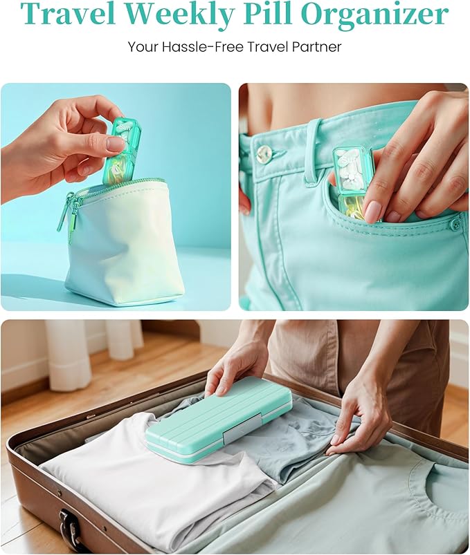 - 【Easy Use & Easy Life】Are you tired of bland, outdated pill organizers that fail to meet your needs? Or do you worry about forgetting your pills on busy days? This stylish pill organizer is designed to solve these problems. Fill it once a week, and its portable compartments make it easy to carry your doses anywhere. A practical and elegant solution for anyone juggling health and a busy schedule