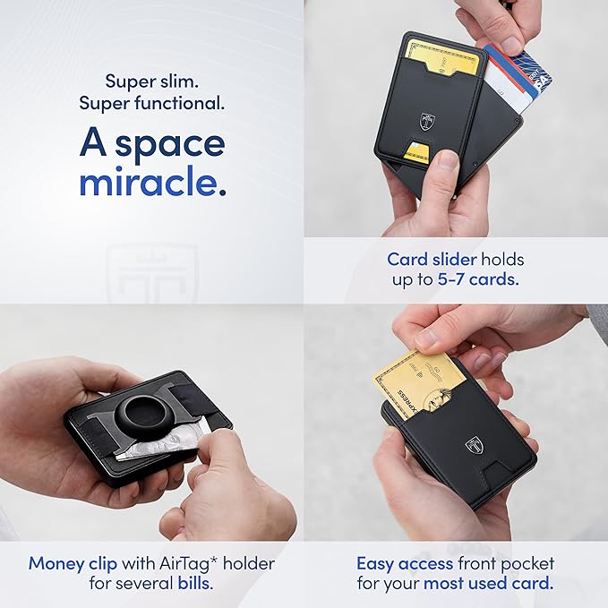 - 𝗔𝗜𝗥 𝗧𝗔𝗚 𝗪𝗔𝗟𝗟𝗘𝗧 – put your AirTag* Accessories into the pocket and find your AirTag * smart wallet anywhere. (𝗔𝗶𝗿𝗧𝗮𝗴* 𝗶𝘀 𝗻𝗼𝘁 𝗶𝗻𝗰𝗹𝘂𝗱𝗲𝗱)