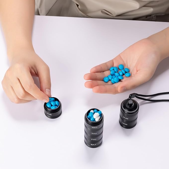 - Quality Metal Materials: Medicine pill organizer is constructed from high-quality materials aluminum. It offer durability, corrosion and resistance structure, making them ideal for travel. They features an anodized for added protection and aesthetic appeal. Precision engineering ensures that all parts fit tightly, providing robustness and longevity.
