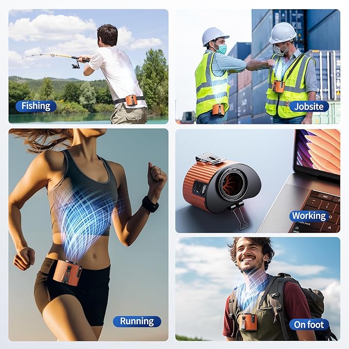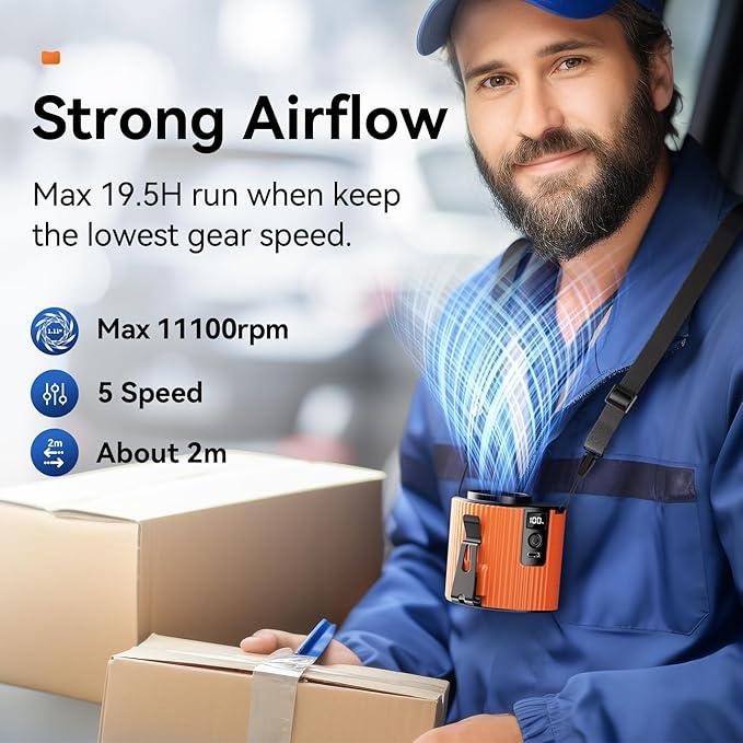 - 【5 Speeds Modes】Waist fan has five different wind speeds,from speed 1 to speed 5,the motor speed is from low to high,from 5,500rpm to 11,000rpm.meet you differnt needs,you can choose the proper wind speed to enjoy cool feeling in hot day.