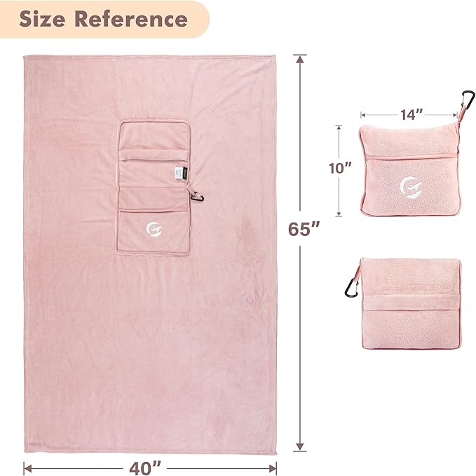 - ✈Cozy Travel Companion for Airplane & Car: Generously sized travel pillow blanket, measuring 65” x 40”, designed to keep you warm and comfortable during long flights, car rides, camping, or any travel adventure. This compact travel blanket is your perfect airplane travel essential and travel gift for women and kids, providing warmth and comfort throughout your journey.