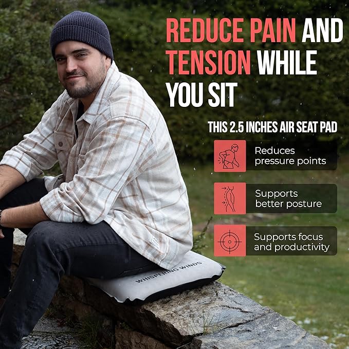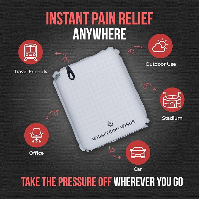 - INSTANT COMFORT JOY: Relieve discomfort, unwind, and tackle any adventure with this versatile blow up seat cushion. Perfect for outdoor adventures, travel, and indoor use stay refreshed and uplifted on any terrain.