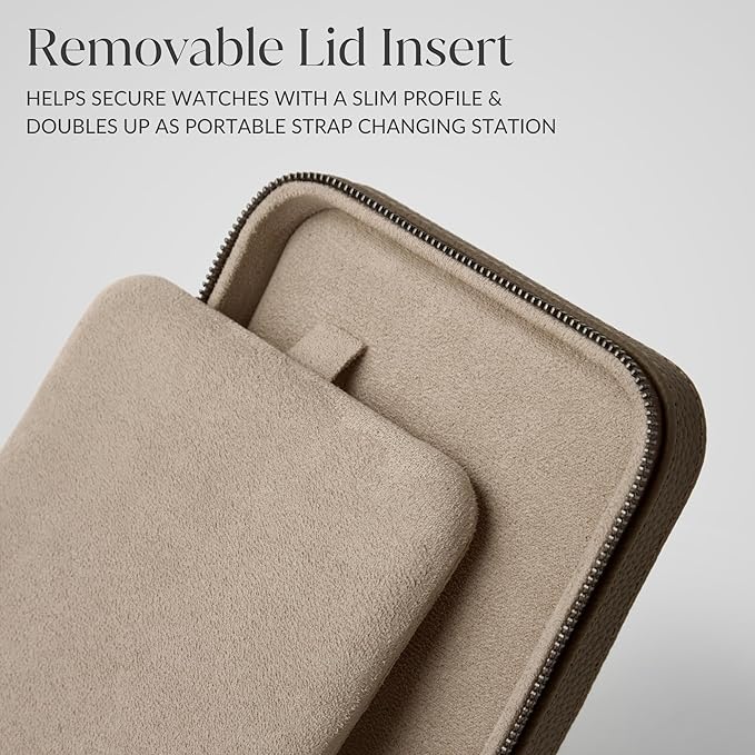 - Adapting to Your Watch: The watch carrying case is equipped with an innovative, removable lid insert, which creates space for larger watches when removed, provides even greater protection for slimmer timepieces, whilst also conveniently doubling up as a cushioned platform for strap changing whilst travelling.