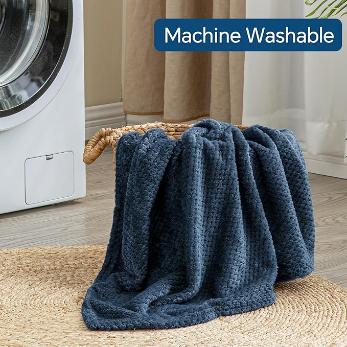 BEDELITE Travel Blanket with Bag, Ultra-Soft Jacquard Fleece Blanket with Luggage Sleeve & Backpack Clip, Airplane Blanket Travel Essentials, Navy