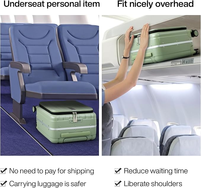 - 【Underseat carry on luggage】The size of the 16 inch aluminum frame carry on luggage airline approved:overall dimensions is L14*W9*H17.9"(include handles and wheels),packing dimensions is L13.5*W15.1*D7.8,capacity≈26.2L,weight 6.4LB.Can fit under the seat and fit in the overhead bin,It can also be used as a personal item,it's a best lightweight luggage