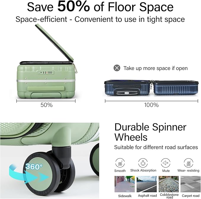 Hanke 16 Inch Underseat Carry On Luggage with Wheels,Small Hard Shell Suitcases for Weekender,Top Opening Lightweight Travel Luggage Suitcase for Womem Men,Bamboo Green.