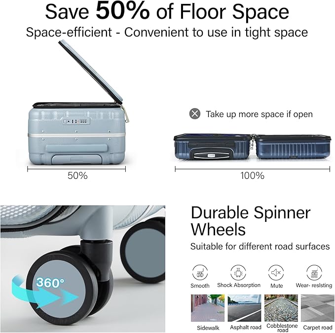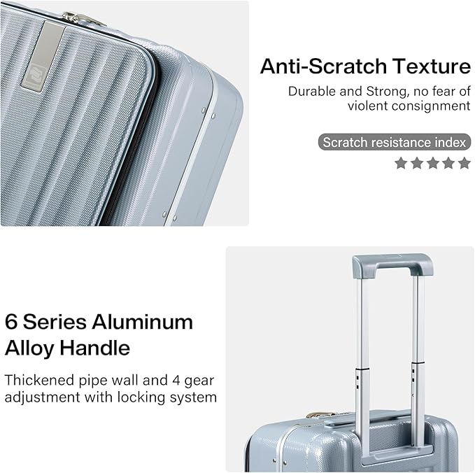 - 【Better Material】This is a suitcases with wheels hardshell,it get benifits from PC material and micro diamond texture on the surface, which is sturdy and scratch resistant,keeping travel suitcase beautiful trip after trip.The lining of this international carry on luggage is also very comfortable, and close fitting clothes can be stored with confidence.
