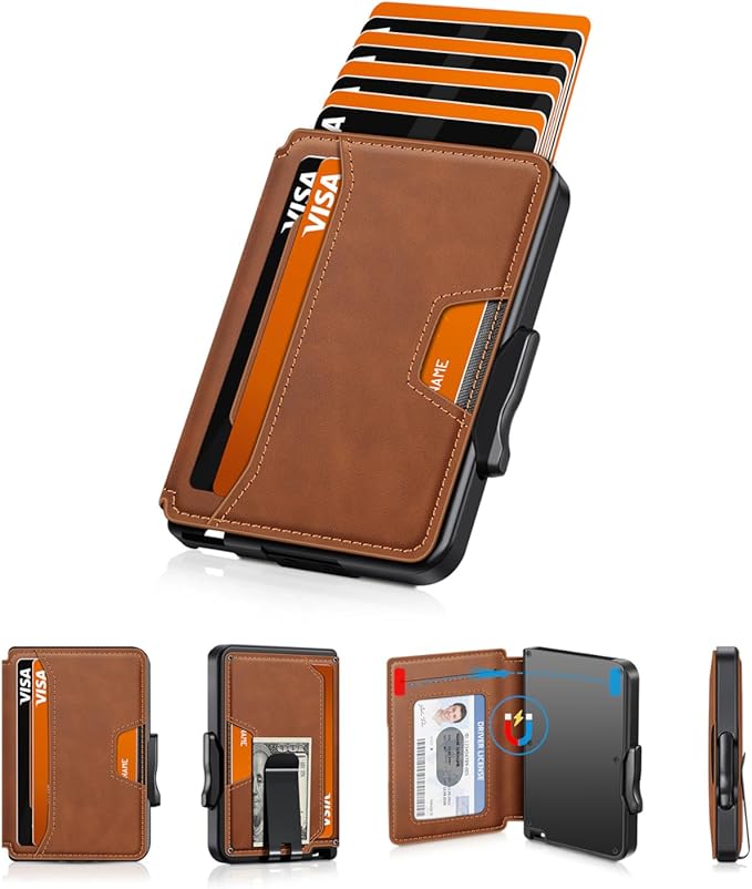 Wallet for Men, Mens Wallet Minimalist Slim Wallet, RFID Blocking Smart Pop Up Wallet with Money Clip & ID Window, Metal Compact Wallet, Aluminum Credit Card Holder Wallet