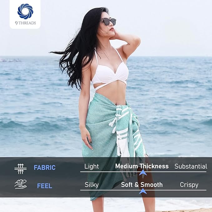 - ✨ Soft, Prewashed & Incredibly Versatile: Each 9Threads towel is prewashed for lasting softness and reduced shrinkage, offering a luxurious feel from day one. Designed for all-in-one functionality, it effortlessly transforms into a yoga towel, pool towel, sarong, picnic blanket, boho throw, or travel wrap—a stylish and practical essential for home, beach, gym, or on-the-go adventures.`