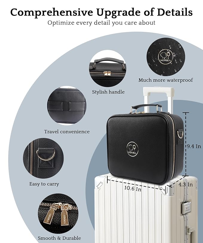 - 💄 【Customizable Makeup Storage】Organize your cosmetics effortlessly with MOMIRA's makeup case. Featuring six detachable shock-resistant EVA partitions, you can customize the storage space to fit your needs. Say goodbye to messy makeup organize bags as it protect your cosmetics from damage or leaks. The included spacious brush bag enables you to carry more makeup brushes while also maintaining the cleanliness and dryness of the makeup case.