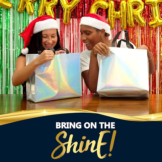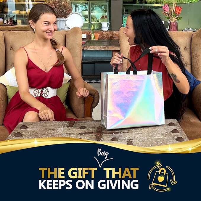 - BRING ON THE SHINE – Featuring a holographic laser surface, our iridescent gift bags with handles create beautiful reflections under different light conditions. They are perfect as birthday bags, gift bags for women, welcome bags, wedding gift bags, party bags, etc.