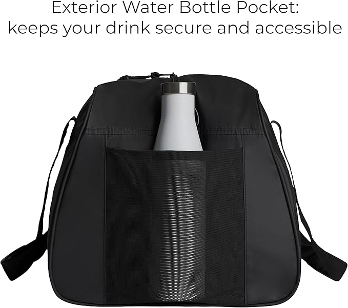 - SPACIOUS WITH MULTIPLE POCKETS – Stay organized with this gym bag for men and women, equipped with a padded media pocket, a stretch-fit water bottle sleeve that holds bottles up to 7cm in diameter, and four interior pockets for essentials, making it a versatile duffle bag for travel or the gym.
