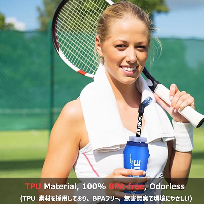 - Safety Commitment: Made from food-grade TPU material, 100% free of BPA and PVC, odorless. It features a leak-proof bite valve design. Simply gently bite the soft part of the mouthpiece and squeeze the soft running water bottle to easily drink water