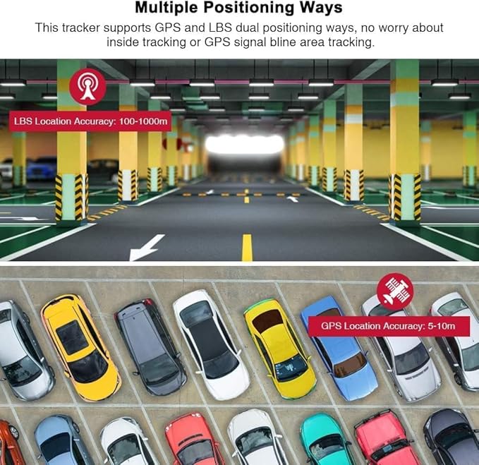 - 【Real-time tracking】: You can track the GPS tracker for vehicles in real time on Google Maps via mobile phones, SMS, and computer web with a minimum data upload interval of 10 seconds! It features GPS+LBS dual positioning mode, providing an accuracy of 5-10 meters in GPS mode and 100-2000 meters in LBS mode. This car tracker uses advanced 4G LTE technology, offering fast and reliable tracking capabilities for all your travel needs.
