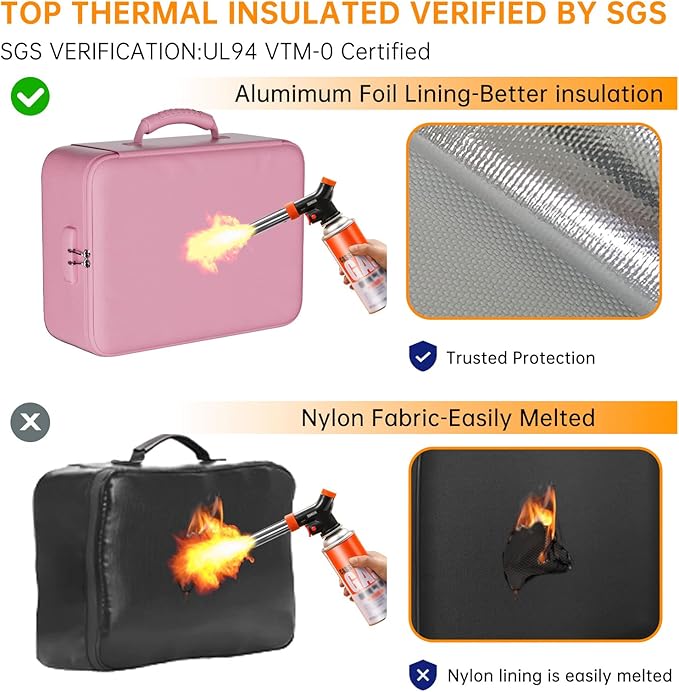 - 5200°F Fireproof & Water-resistant safe: The Upgraded important document organizer is made of thickened silicone coated fireproof cotton material and aluminum foil which withstand the temperature up to 5200℉(double safe protection). Aluminum foil lining isn’t easily melt under high temperature after several tests. It has been passed by SGS TEST(UL94 VTM-0 Certified).The bag is fireproof&Water-resistant, which can effectively protect your important documents in a fire, flood, and wet weather