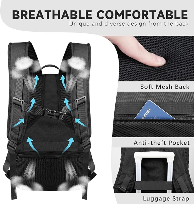 - ✨BREATHABLE & COMFORTABLE: The large School travel backpack for men with a padded and breathable mesh back panel to aid in ventilation and heat dissipation. Shoulder straps are made of honeycomb-breathable material. The ergonomic design ensures that the weight of the extra large Laptop backpack is distributed, reducing stress on the shoulders.