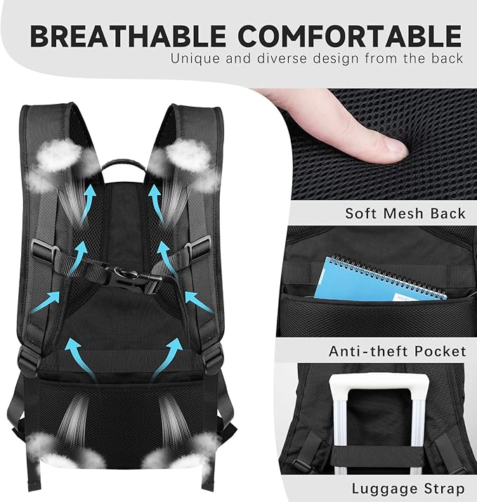 - ✨BREATHABLE & COMFORTABLE: The large School travel backpack for men with a padded and breathable mesh back panel to aid in ventilation and heat dissipation. Shoulder straps are made of honeycomb-breathable material. The ergonomic design ensures that the weight of the extra large Laptop backpack is distributed, reducing stress on the shoulders.