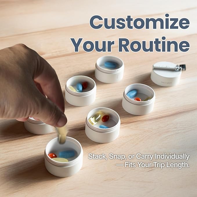 - Customize Your Travel Routine: Take only what you need for a day or a week. Stackable twist-lock design pill box for purse lets you add or remove pill containers easily.