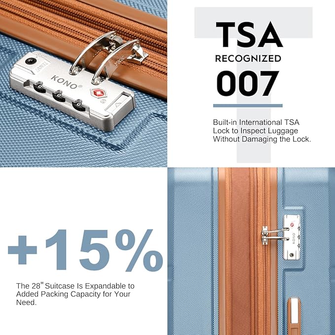 - 【DURABLE + 2 YEAR LIMITED WARRANTY】Crafted from a protective, lightweight hardside PC+ABS shell, this suitcase is scratch-resistant, pressure-resistant, dirt-proof, and waterproof. Each of our Kono durable suitcases undergoes insanely strict quality control test standards to ensure that our products can endure the harsh conditions of modern transportation. Moreover, Kono provides a reliable warranty service.