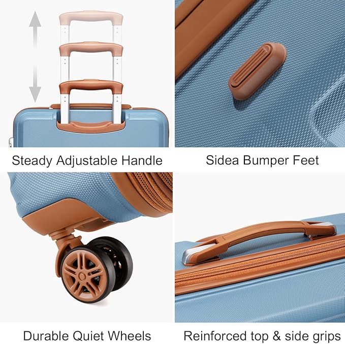 Kono 4 Piece Luggage Sets Expandable(only 28") with Spinner Wheels TSA Lock Lightweight PC+ABS Hardside Travel Rolling Suitcases 20in 24in 28in Carry on and 12in Mini Cosmetic Case Apricot Blue