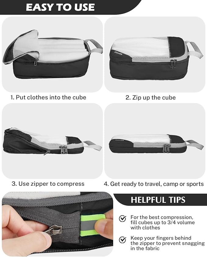 • Space Saver: Double zippers of the packing cube work perfectly in compressing clothes to help save space in your carry on luggage or travel backpack. Great travel gear to minimize your carryon size. Quick grab handle for easy access to pulling out packed cubes from suitcase or backpack.