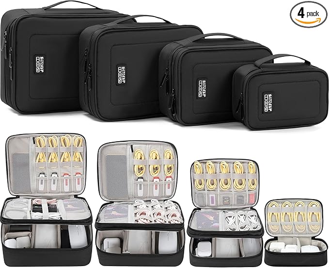 - Awesome Design: 4pcs electronic accessories travel organizer case can carry all you need, whether at home or for travel, it is greatly perfect. X-large : 11.4"× 9"× 4''; Large :10.5''× 8''× 4''; Medium : 9.3''× 6.5''× 3.5''; Small : 7.8''× 5''× 2