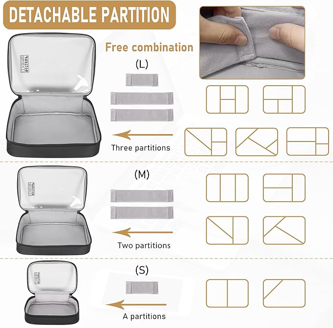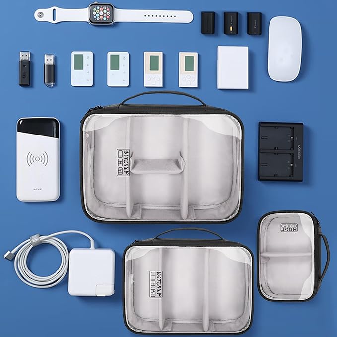 - With the dividing strip,Super Materials.You could be free to separate the storage space with the dividers, to fit many kinds of electronic accessories and cables or chargers.Waterproof Nylon Material:Durable and Water-resistant Nylon and clear plastic, Sleek looking, Lightweight and sturdy.Well-padded semi flexible covers offer excellent protection for your accessories; 2 zipper opening for easy and immediate access to your all your electronics accessories